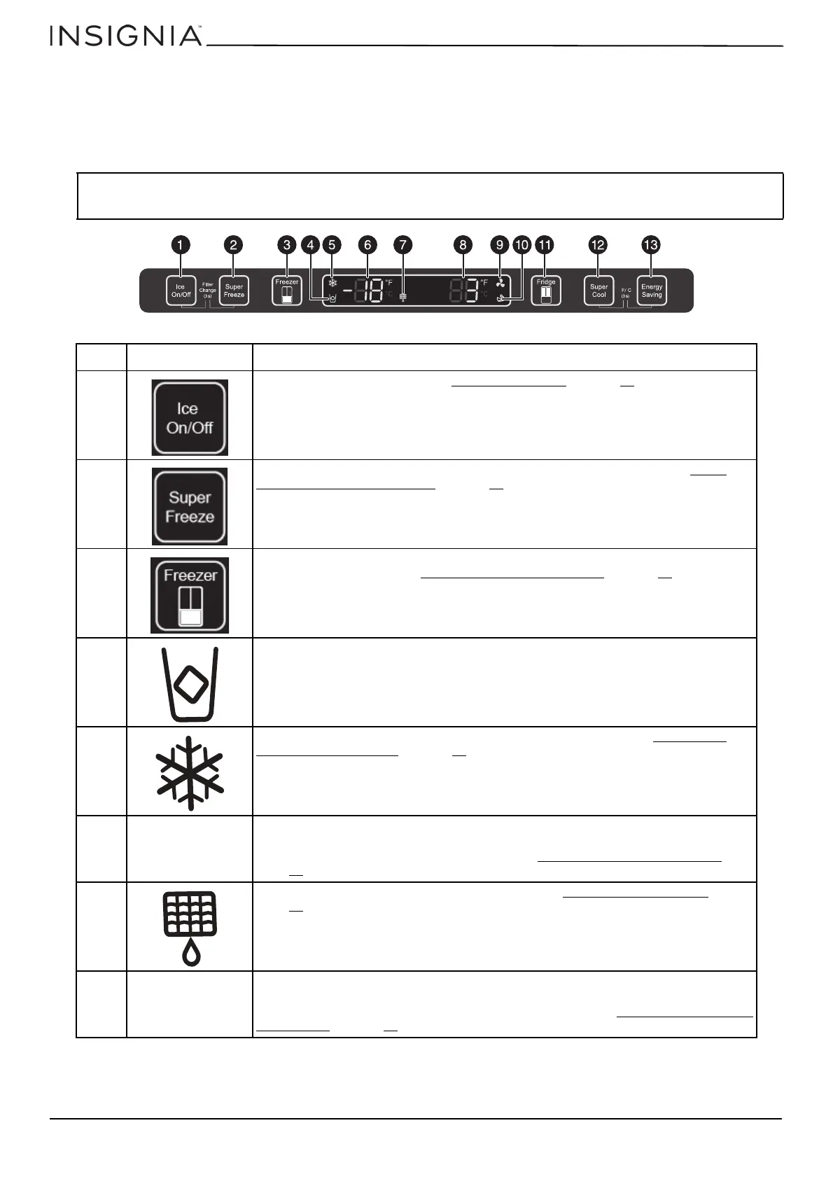 Press to turn on the freezer compartment temperature control, then press and hold to