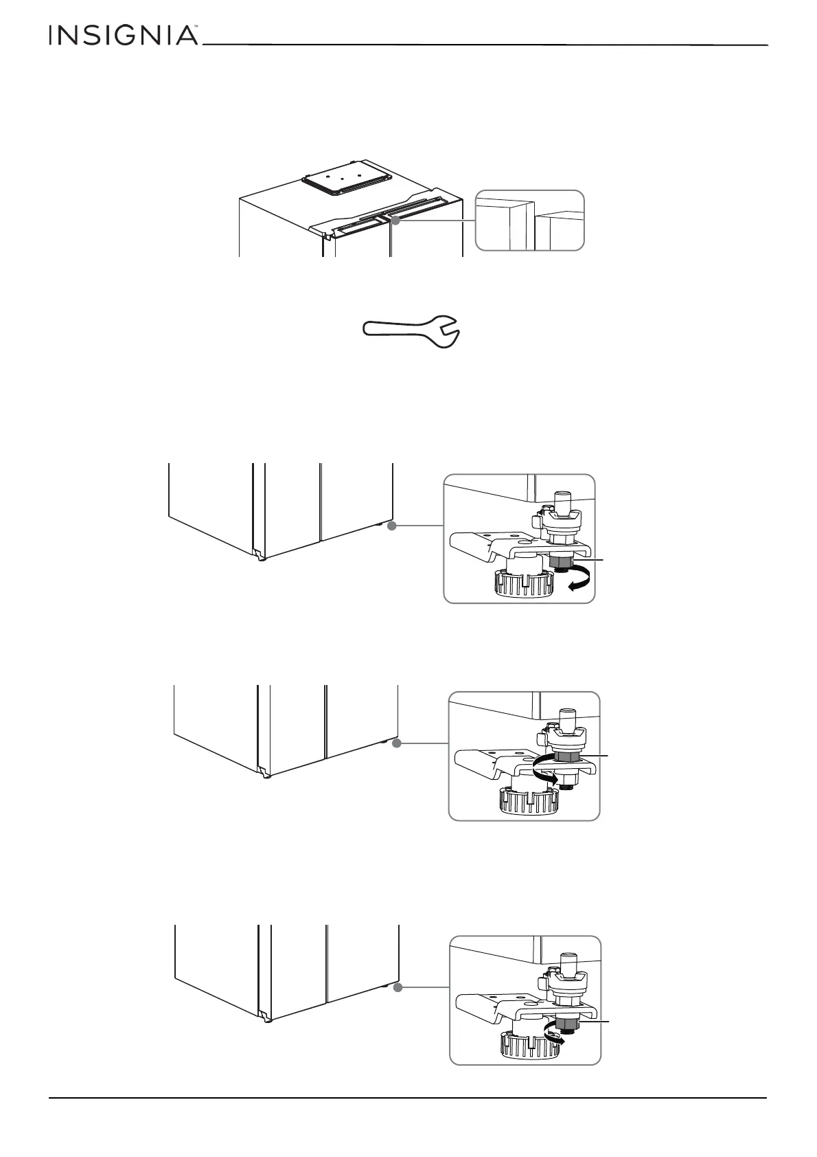 2 With the refrigerator compartment door shut, loosen the locking nut with a wrench (provided) by turning it clockwise