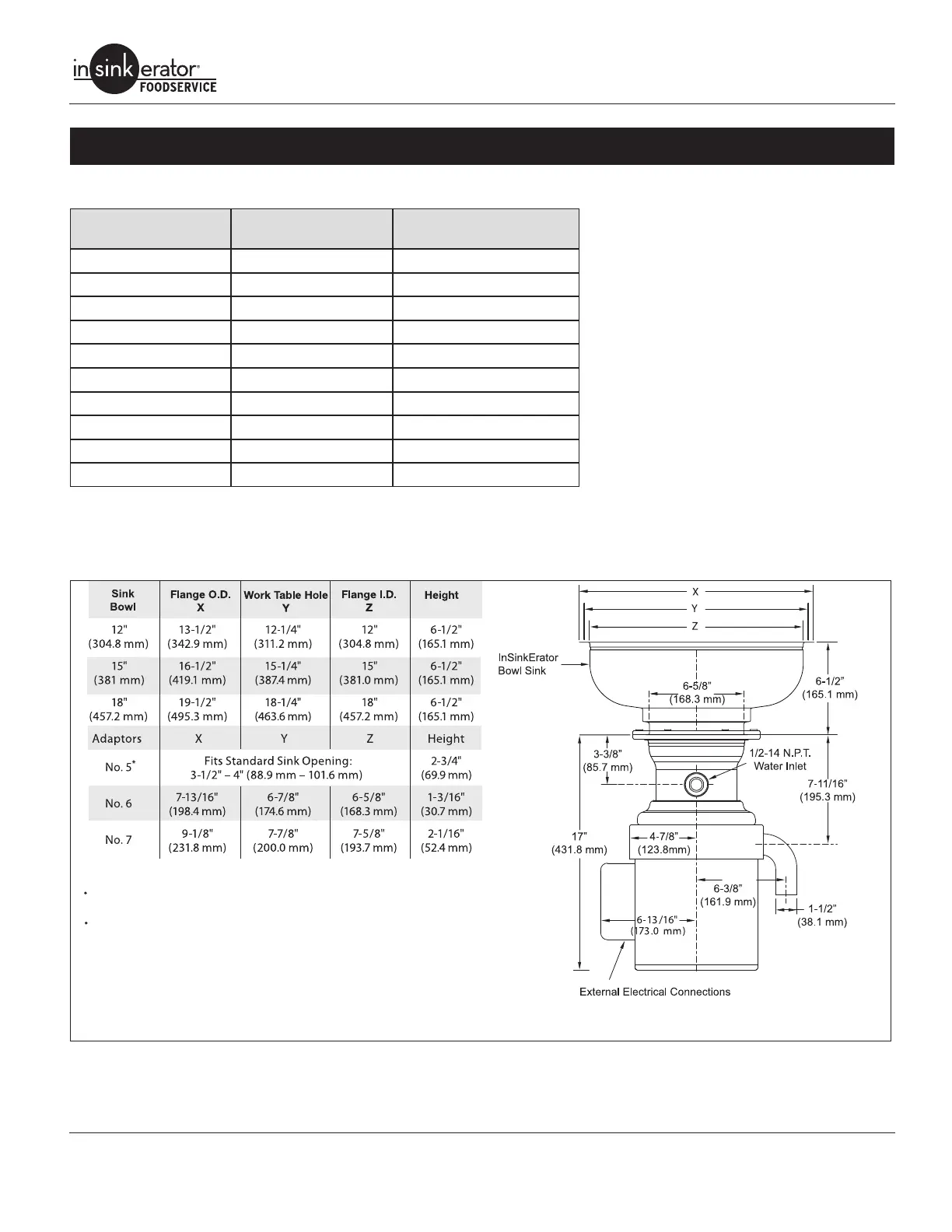 IMPORTANT: Use the following dimension charts for adaptor height in place of InSinkErator sink bowl height when mounting directly