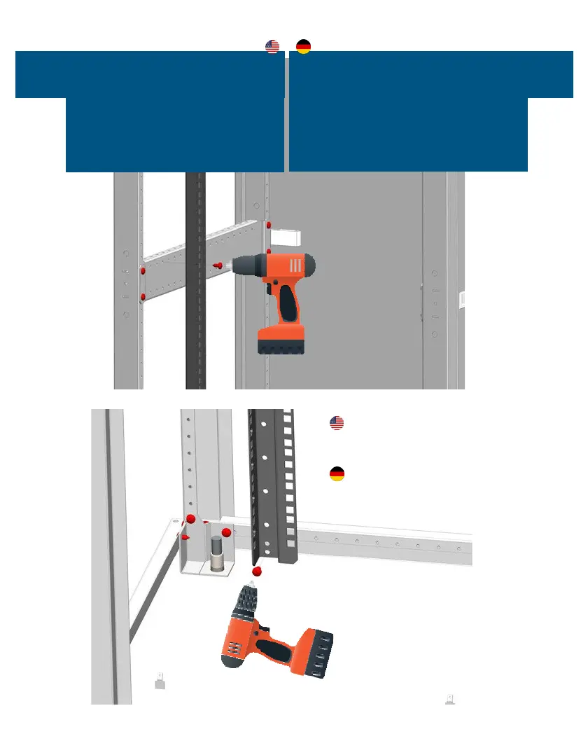 Fixieren Sie die 19“-Schienen mit M5 X12-Schrauben