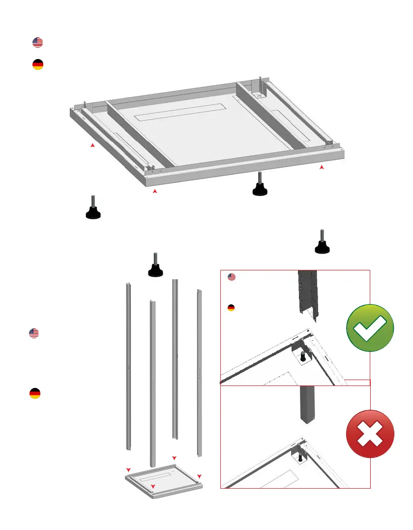 Montieren Sie die Nivellierfüße an dem Rahmen für die