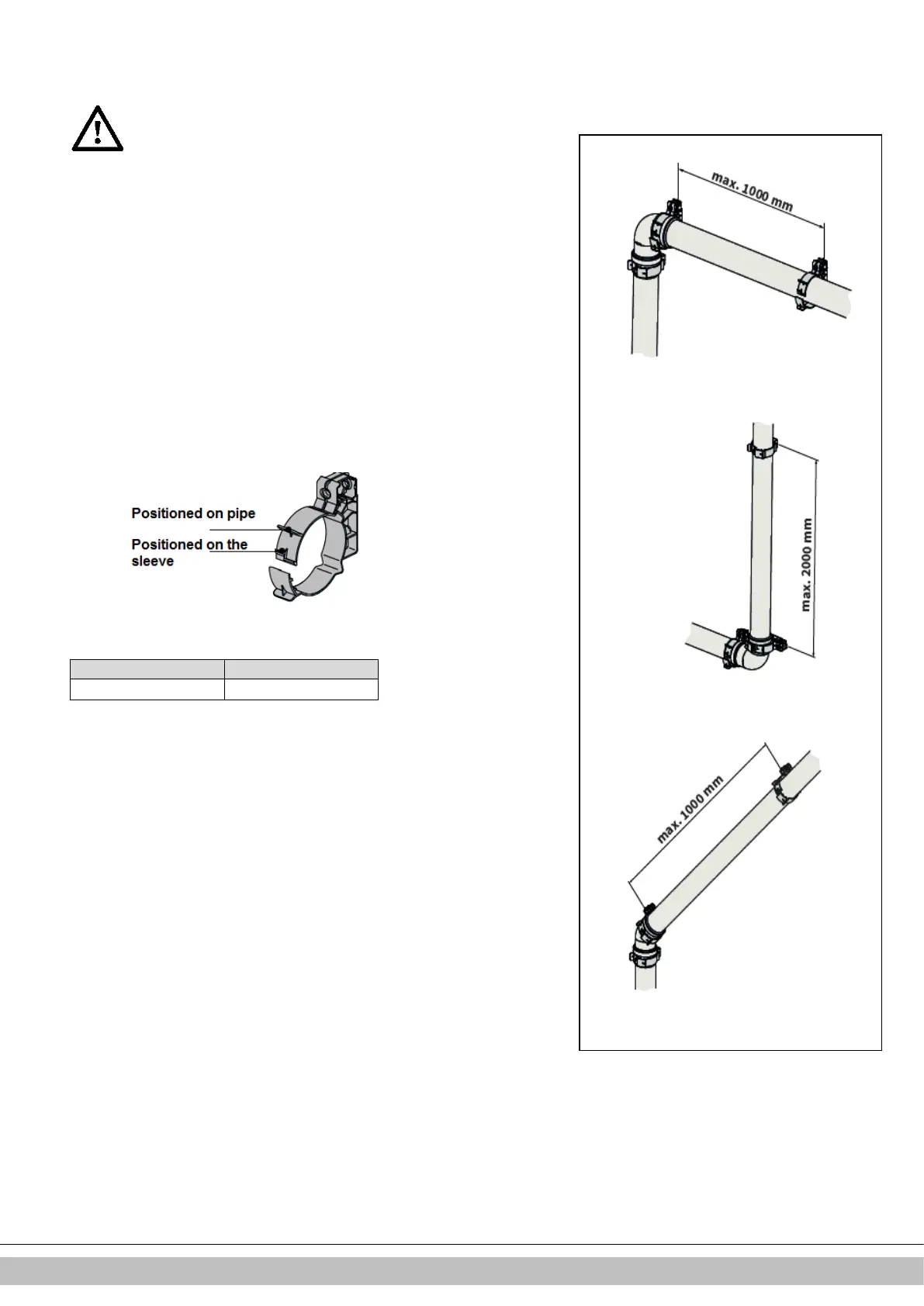 • Position the first clam at a maximum of 500 mm from the boiler.
