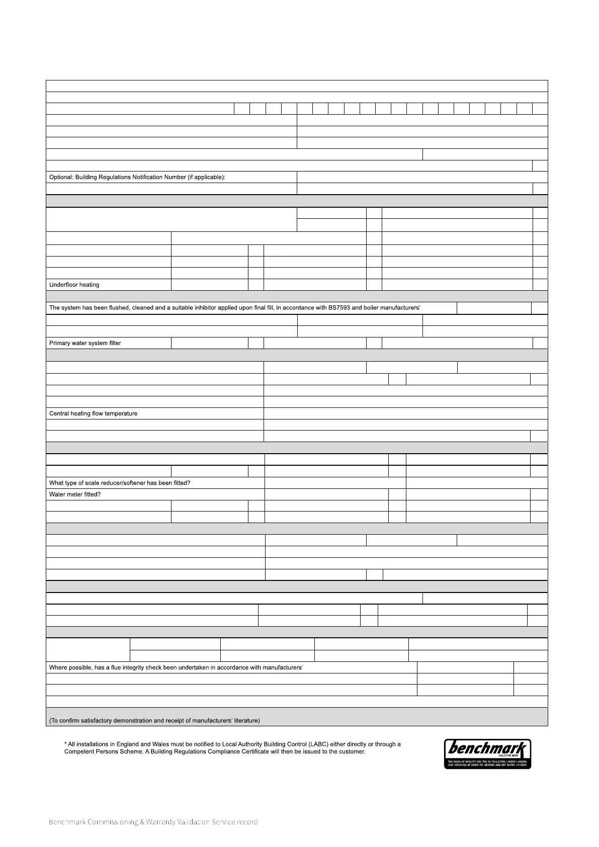 GAS BOILER SYSTEM COMMISSIONING CHECKLIST & WARRANTY VALIDATION RECORD