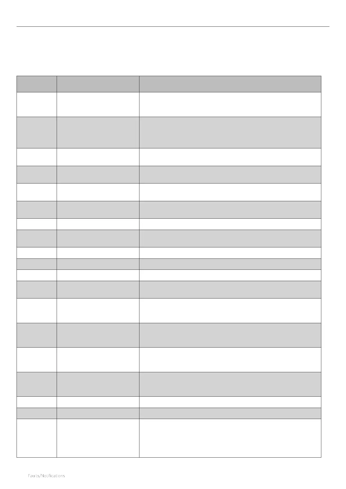 Fault code Description Possible cause/solution