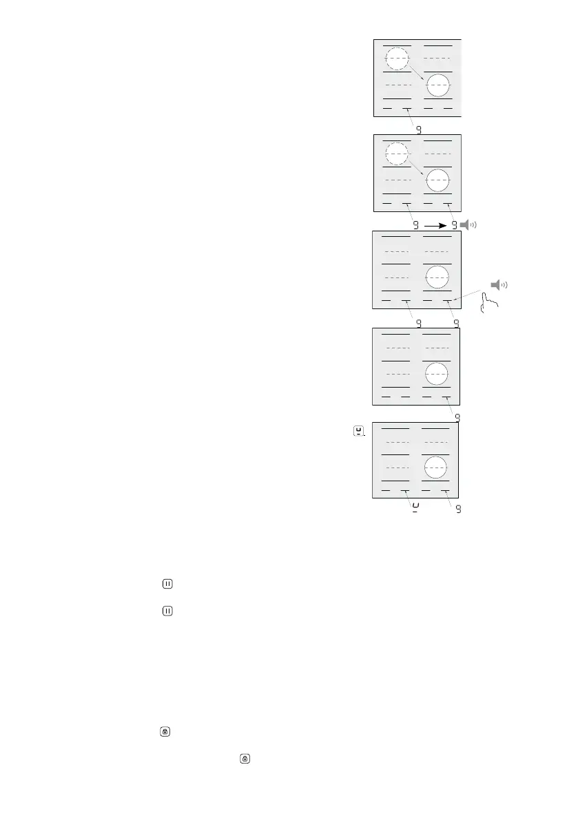 • Het is mogelijk om het koken te pauzeren. Het vermogen van de kookzones wordt tijdelijk op niveau 2 gezet zonder dat