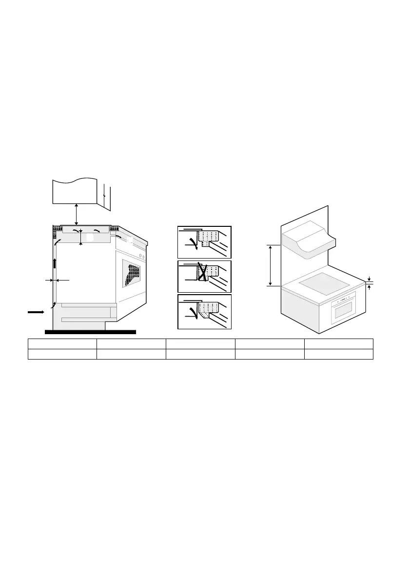• Sorgen Sie für einen Abstand von minimal 15mm zwischen dem Herd, der Schublade oder dem Zwischenträger und