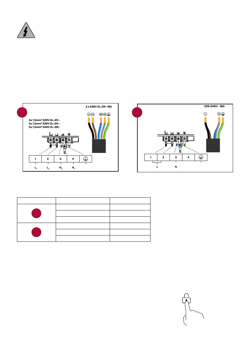 standardmäßig auf 2 x 1 Phase (230V AC) eingestellt. Für das Kochfeld wird ein sogenannter 5-poliger