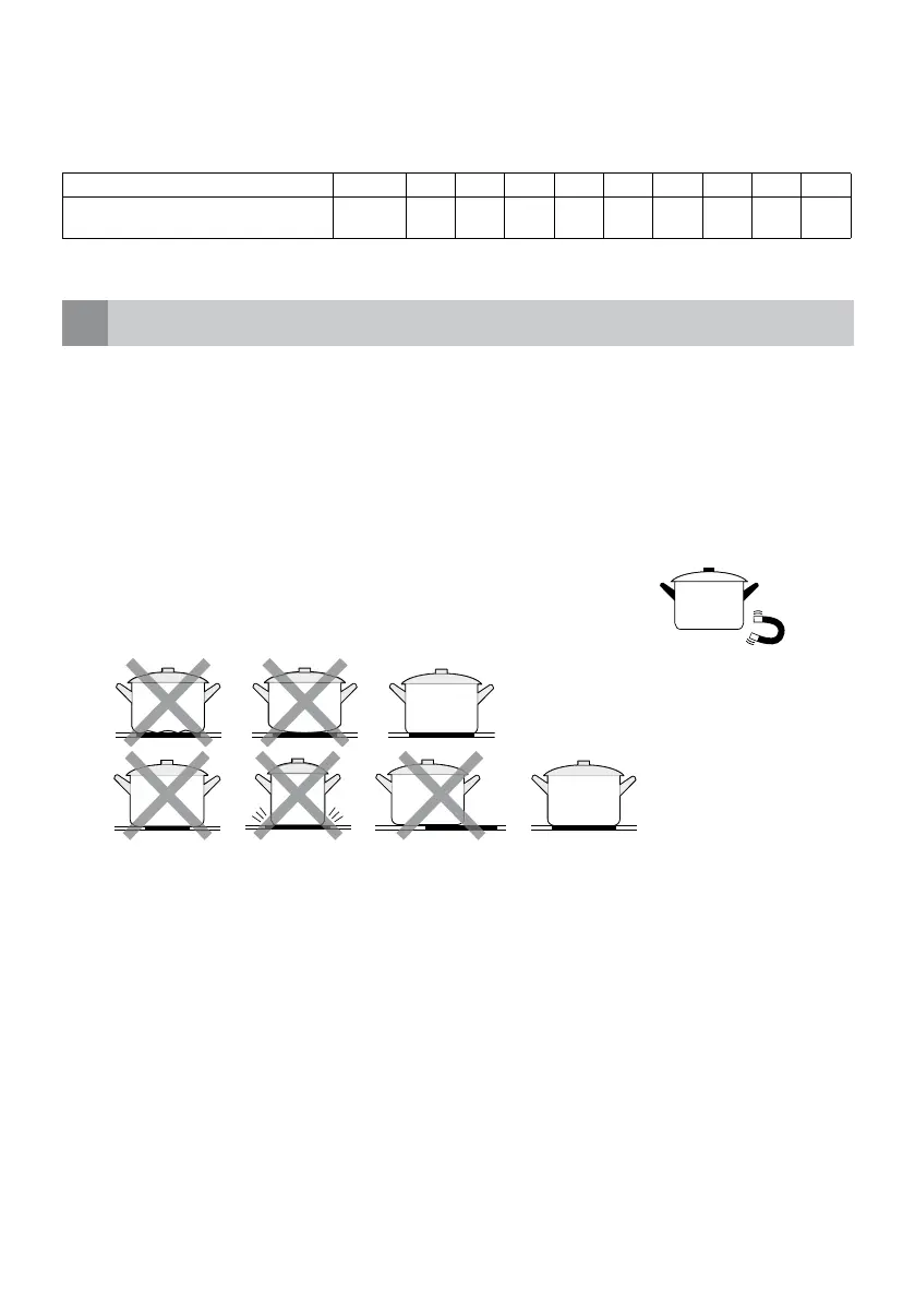 Attention: lorsque l’ustensile de cuisson est retiré, la table de cuisson peut arrêter de chauffer immédiatement. La table de