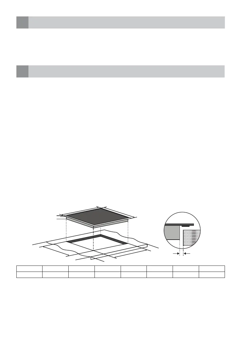 •  Het werkblad waarin de kookplaat wordt gemonteerd moet vlak, horizontaal en stabiel zijn. Volg de instructies van de