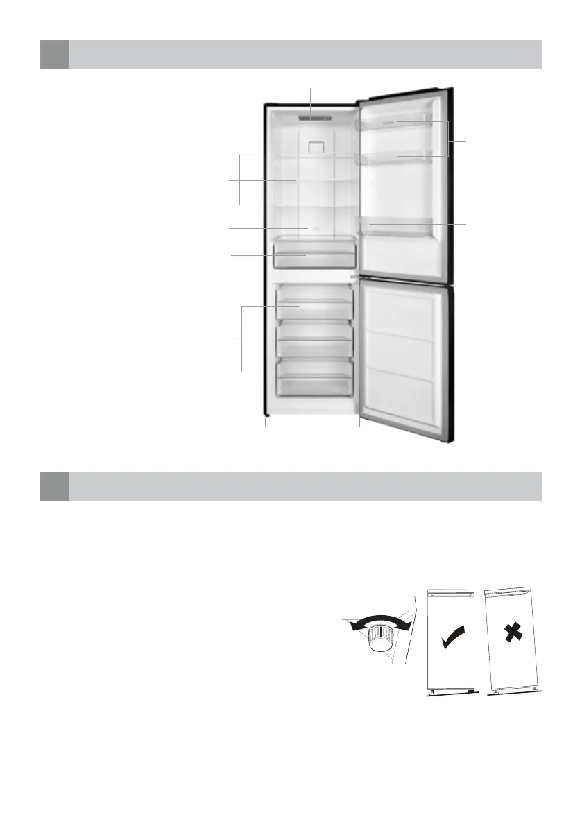 • Met het linker- en rechter stelvoetje kunt u het apparaat waterpas