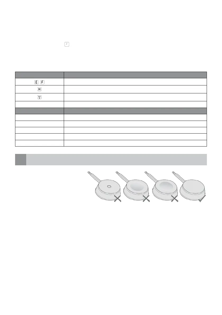 • Der Durchmesser des Bodens der Pfannen und Töpfe muss mit dem Durchmesser der Kochzone übereinstimmen.