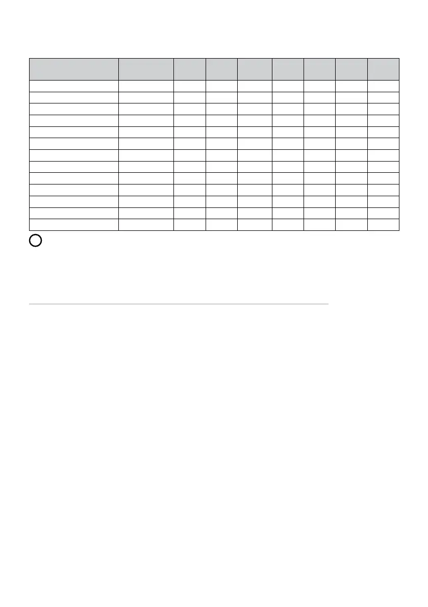 • De tabel laat zien welke instelopties beschikbaar zijn voor welk programma.