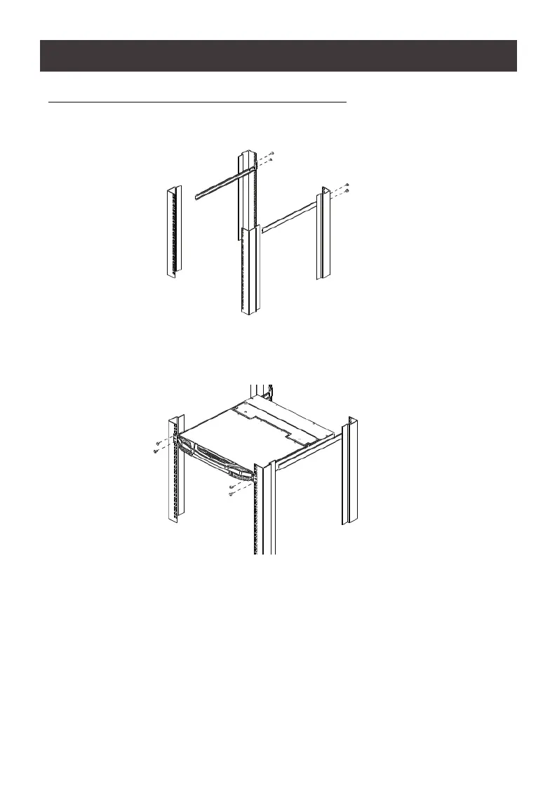 1. Attach the left and right mounting brackets to the back of the rack, installing four