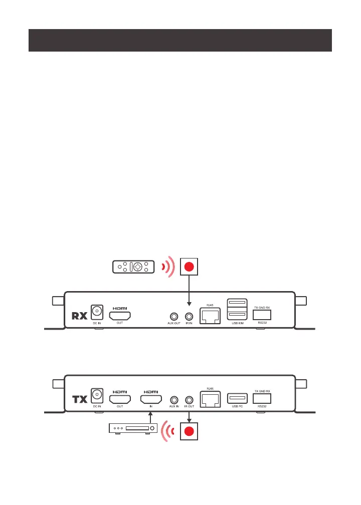 IR control: Connect the included IR extender to the receiver and the transmitter