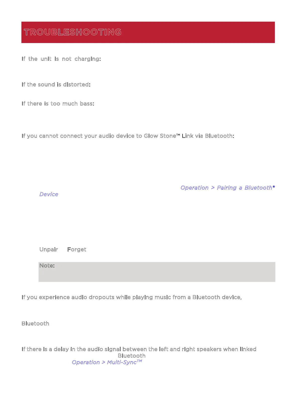 f you cannot connect your audio device to Glow Stone™ Link via Bluetooth: