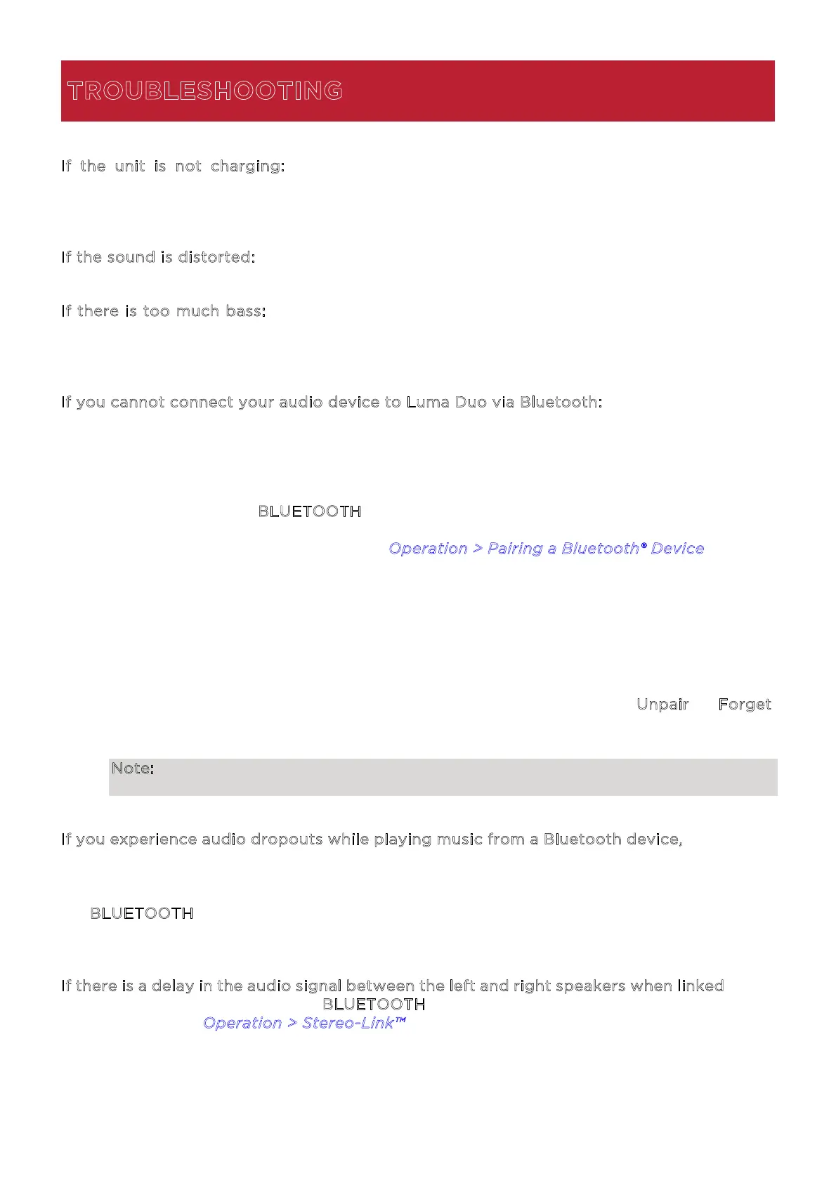 f you cannot connect your audio device to Luma Duo via Bluetooth: