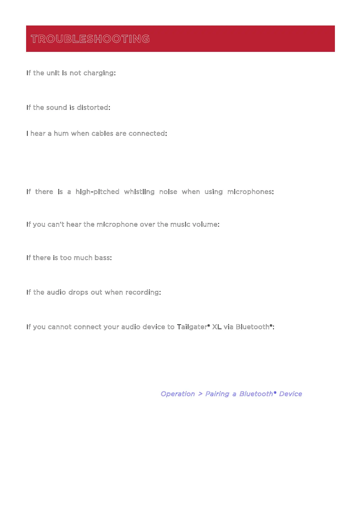 f you cannot connect your audio device to Tailgater® XL via Bluetooth®: