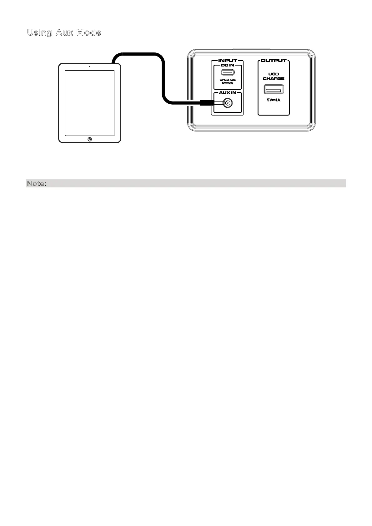 To use AUX mode, connect an 1/8” cable to the AUX input on the rear panel to switch to AUX