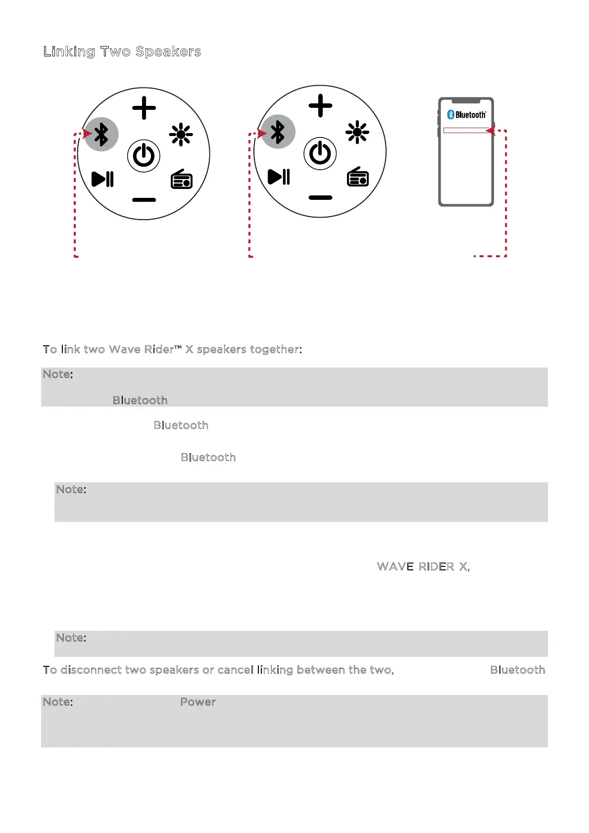 listen to music in stereo you can link two Wave Rider™ X speakers together. One Wave