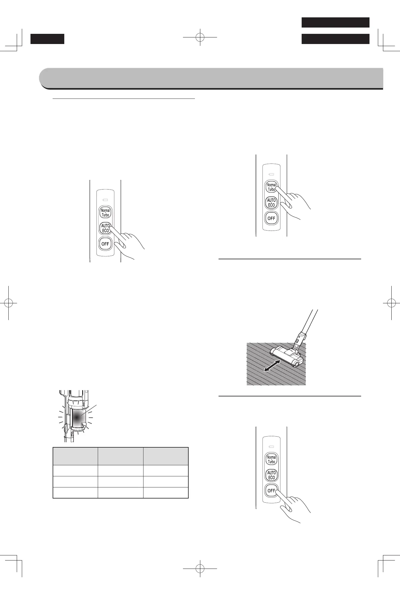 • En modo Auto, la potencia de aspiración se ajusta