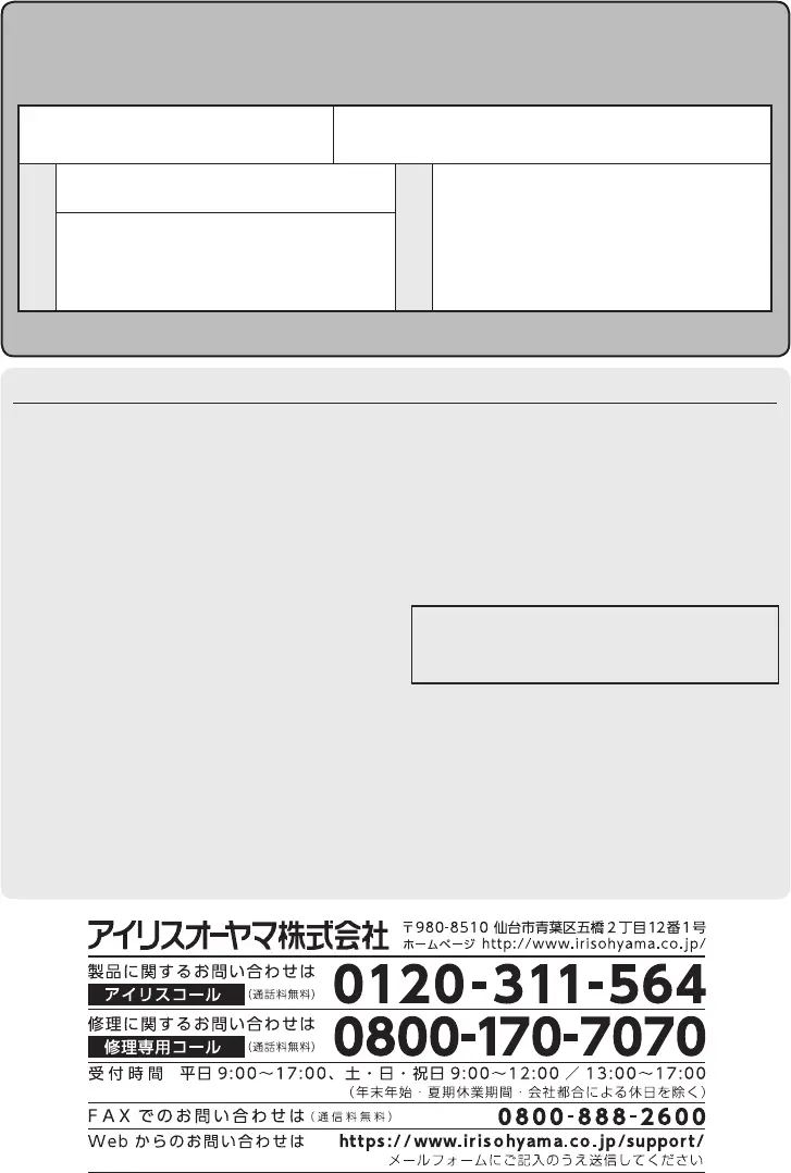 の修理などについてご不明の場合は、お買い上げの販