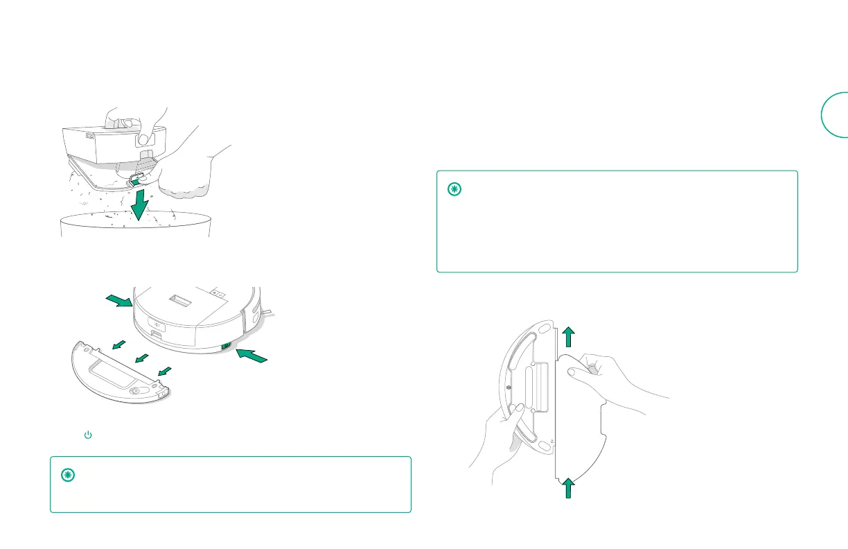 If DustCompactor™ Bin is full, empty before starting a cleaning.