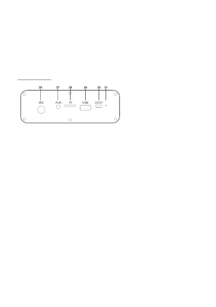8) Brancher l’alimentateur fourni sur la prise de recharge (30)