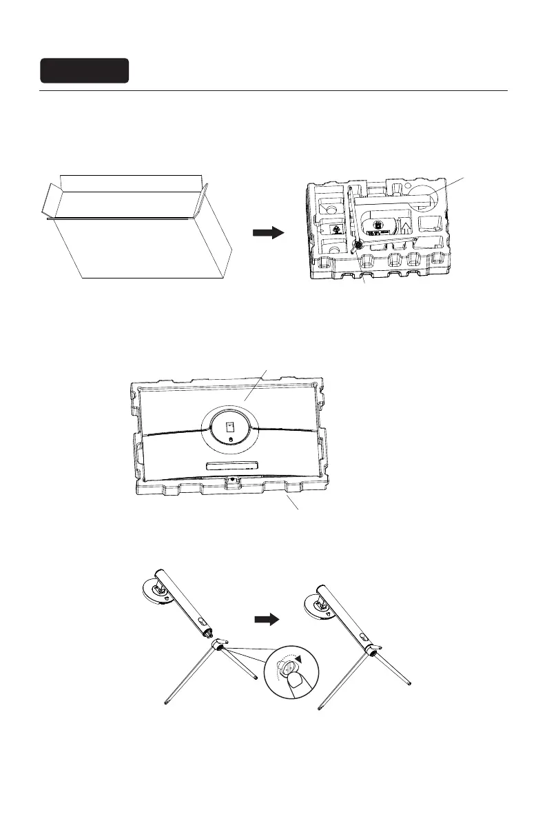 3. Take out the base and stand, and use the thumb screw of the base to lock the stand.