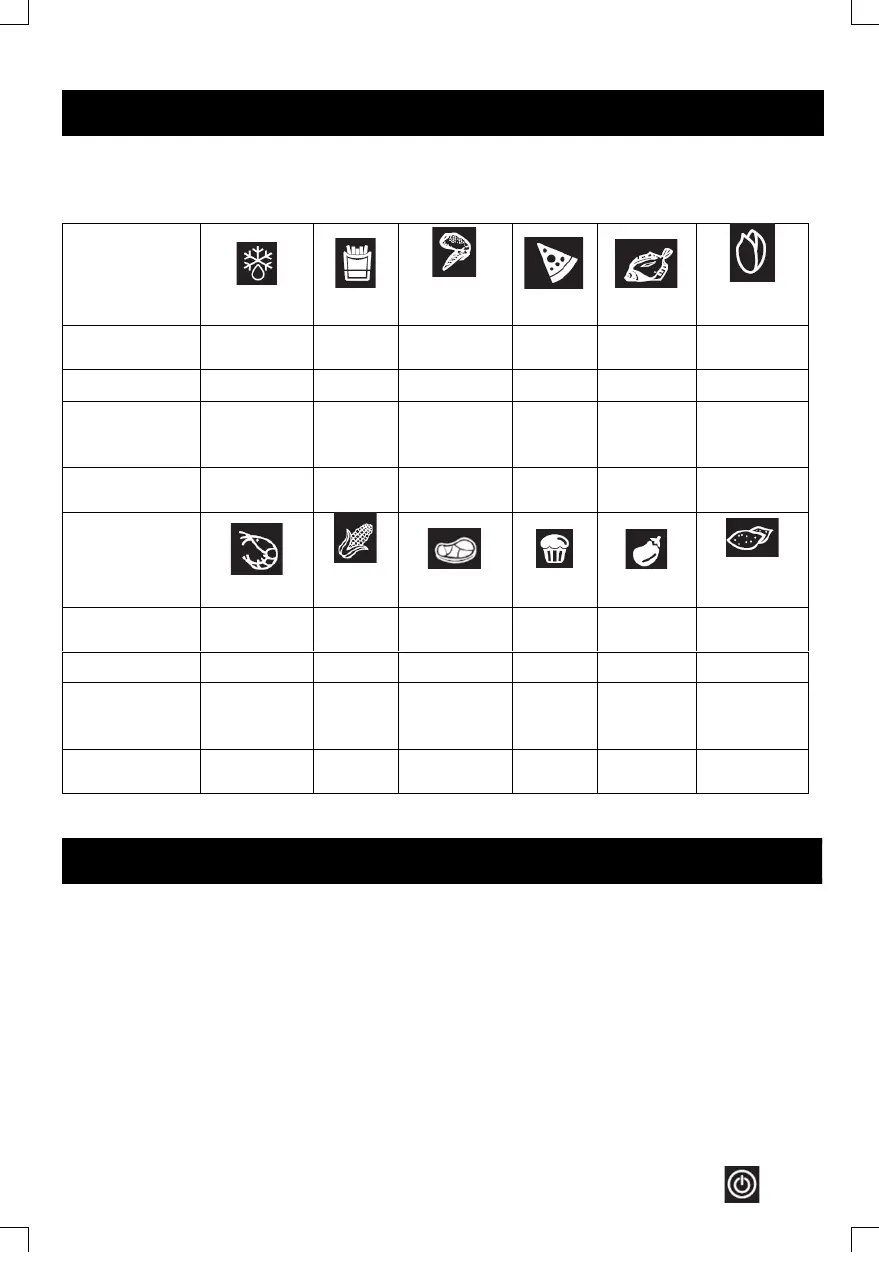 Στον παρακάτω πίνακα παρατίθενται τα προγράμματα και οι προκαθορισμένες θερμοκρασίες και