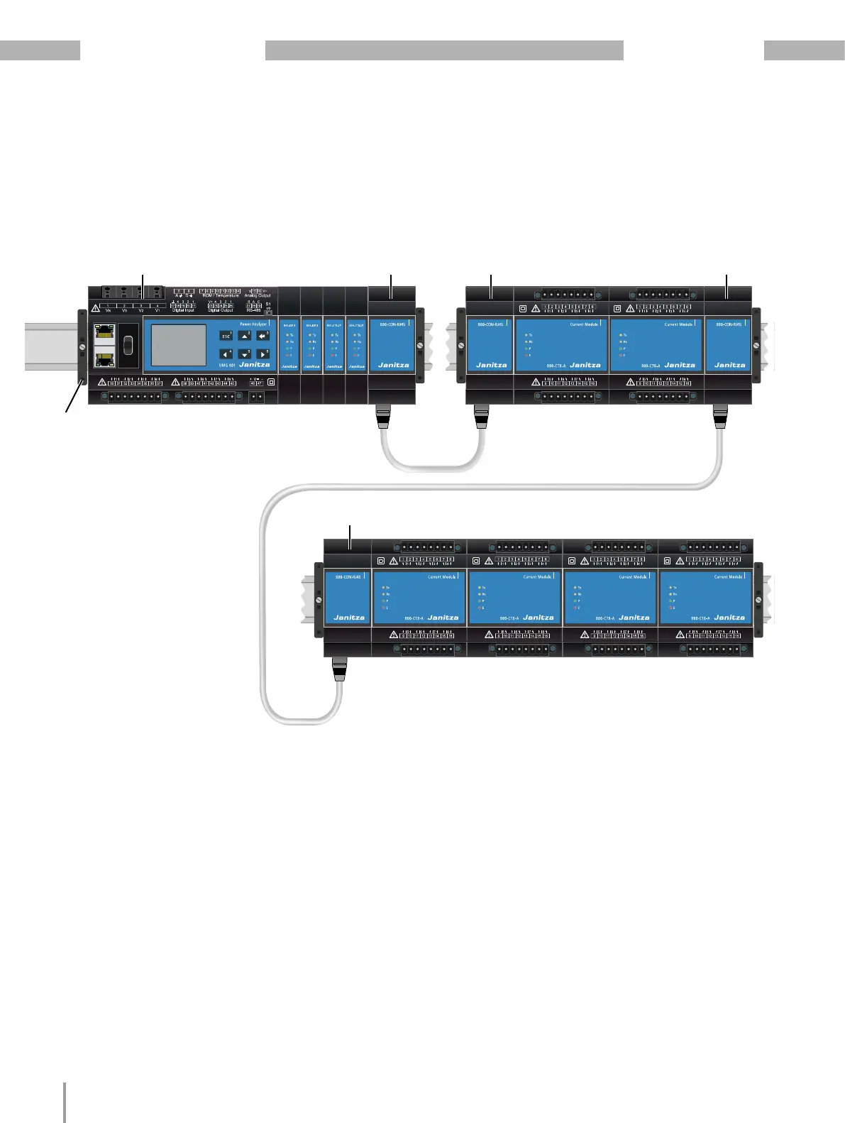 Example of a JanBus topology with 10 modules that each occupy one module slot on the basic device (2x