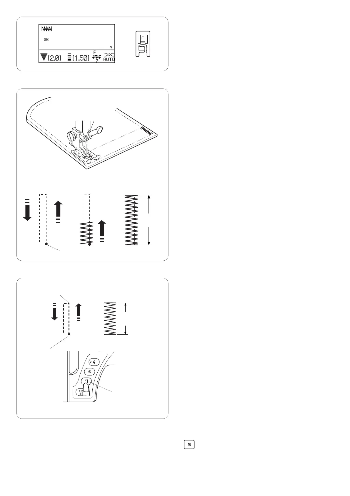 The machine will sew a tacking 1.5 cm (9/16”) long