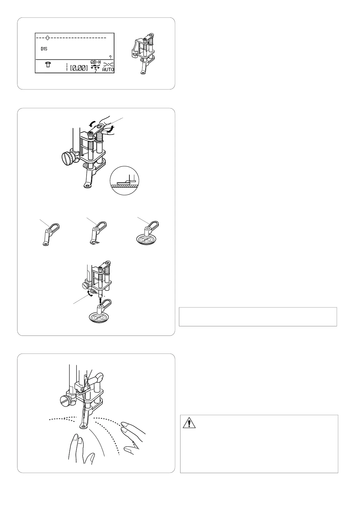 To change the foot, raise the foot and turn the round nut