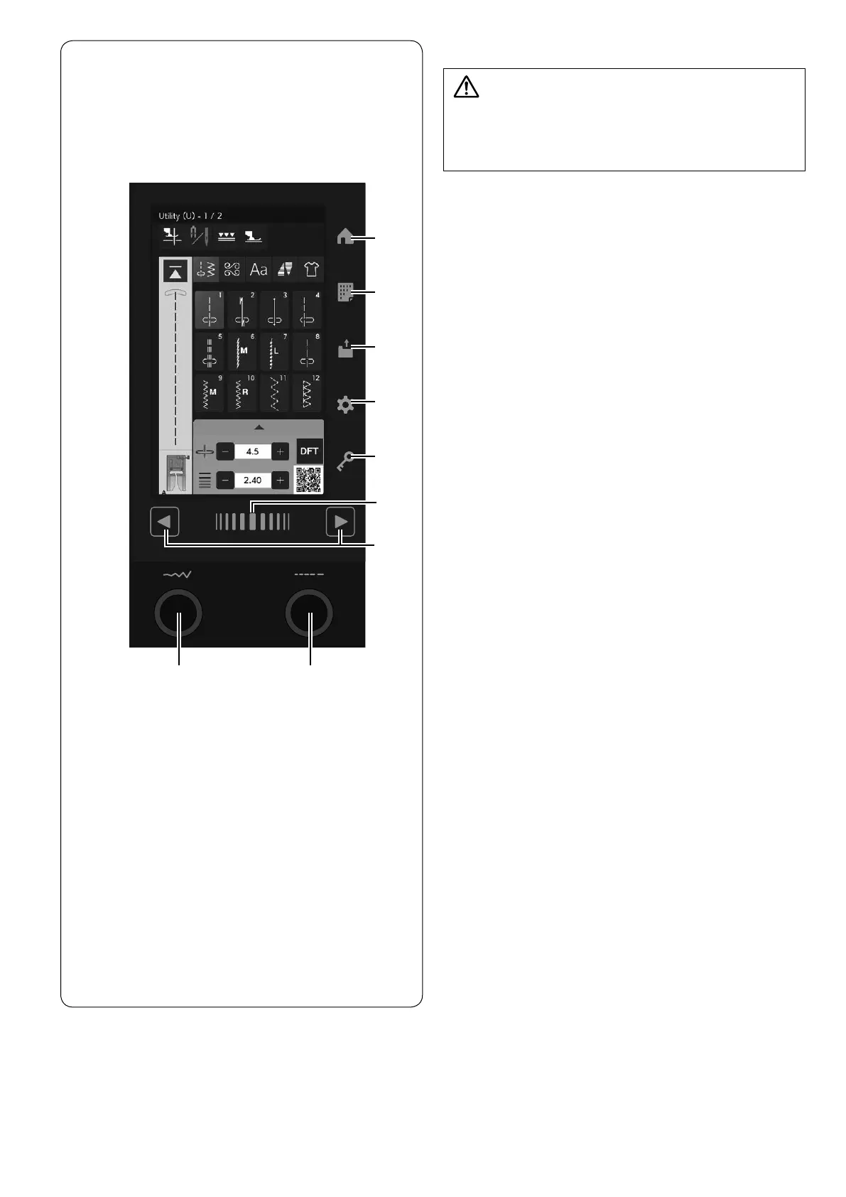 (9) Stitch width adjusting dial (refer to pages 51, 54,