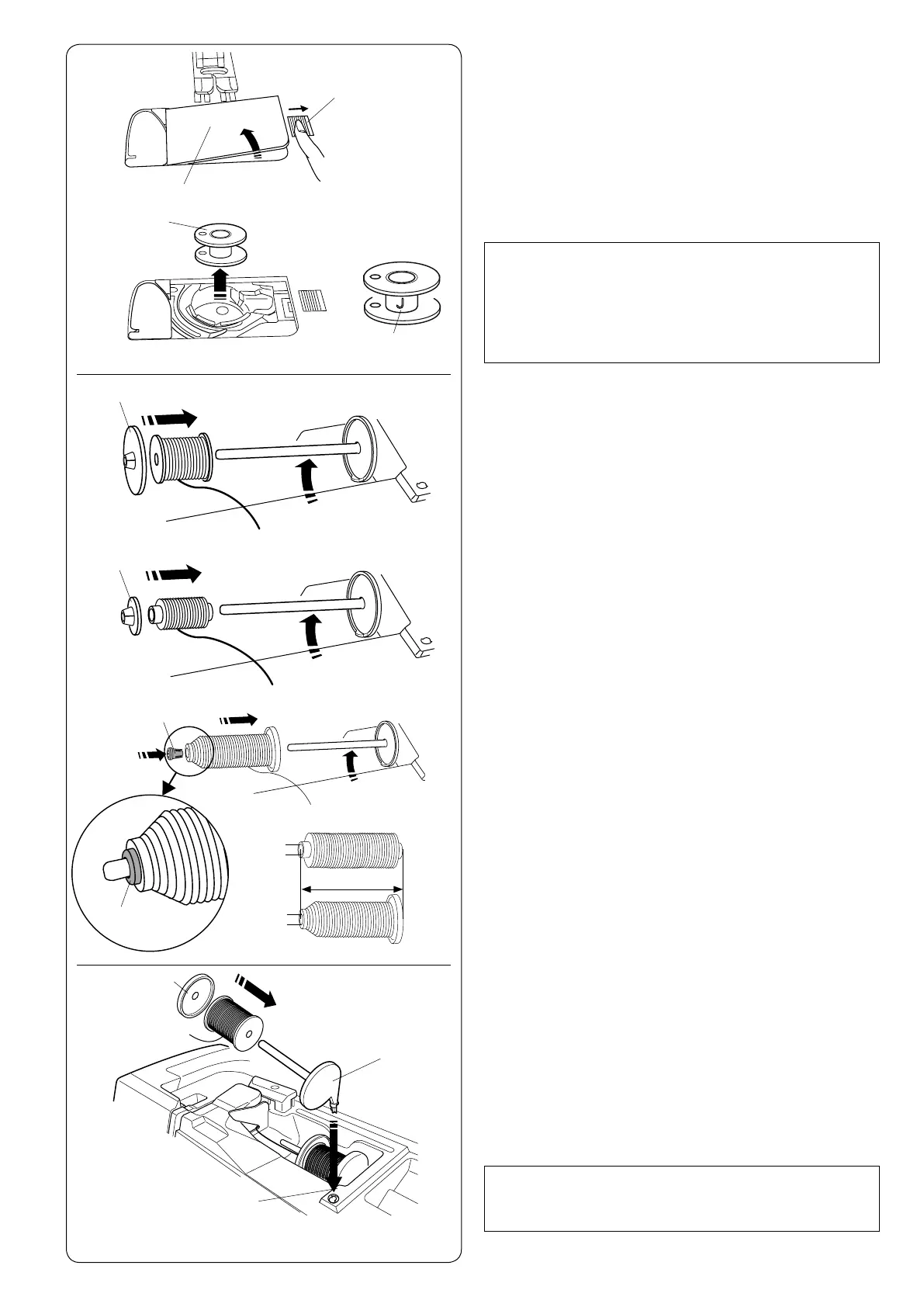 • Use “J” plastic bobbins (4) for the horizontal hook.