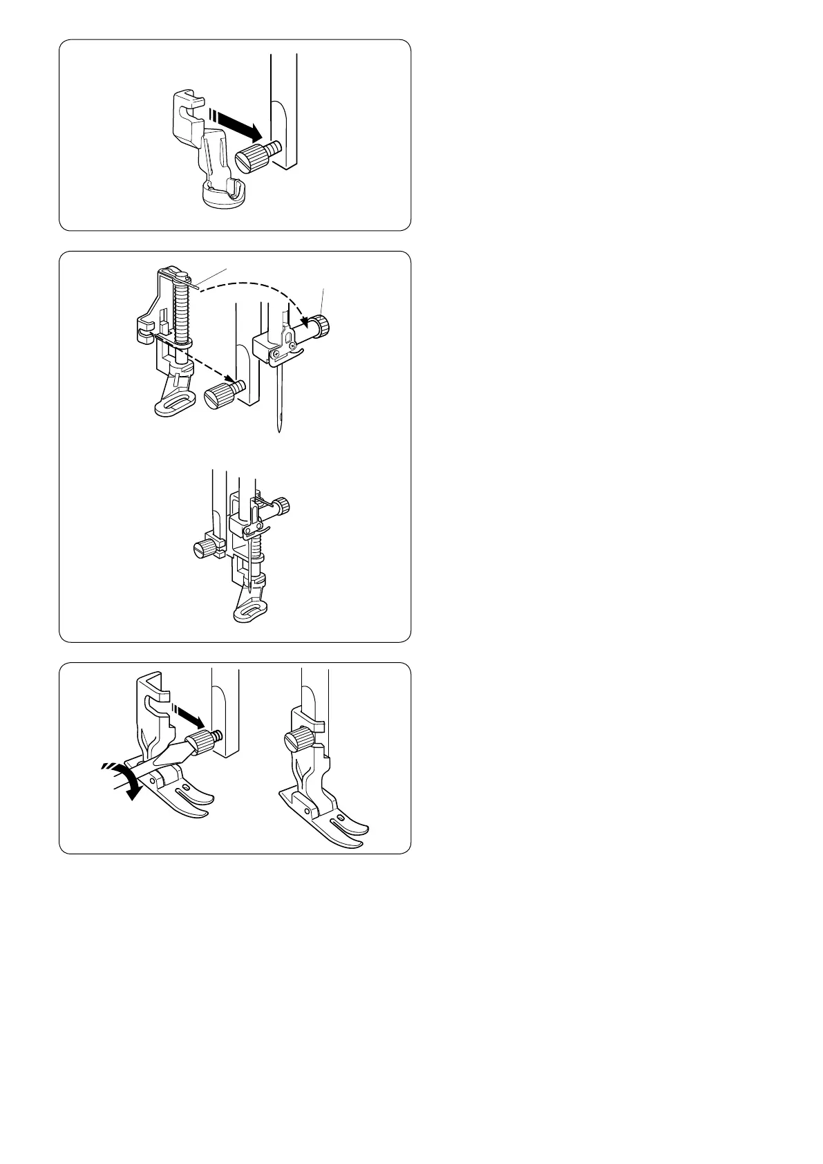to the presser bar by putting the pin on the needle clamp