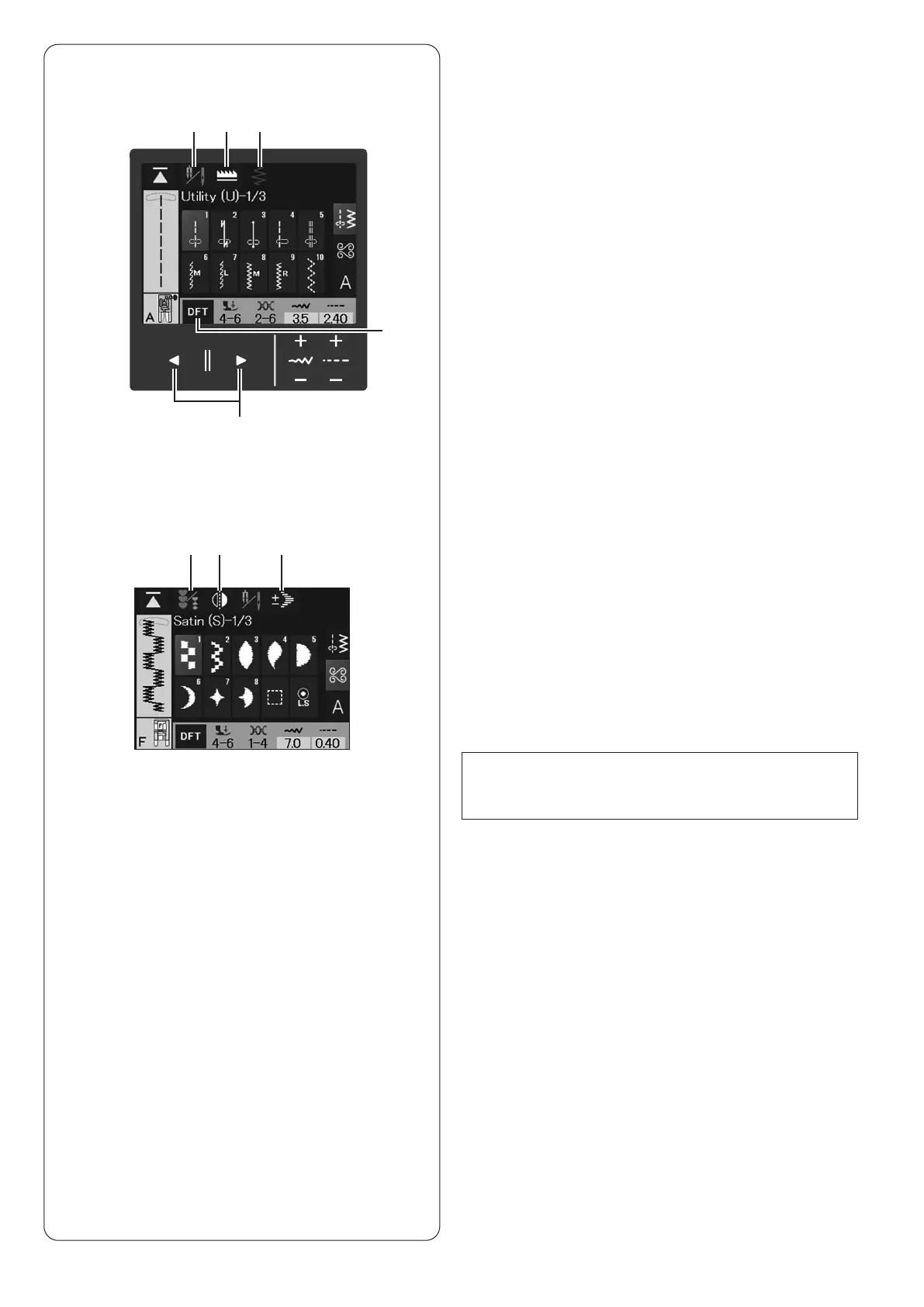 Press this key for variable zigzag sewing (refer to page
