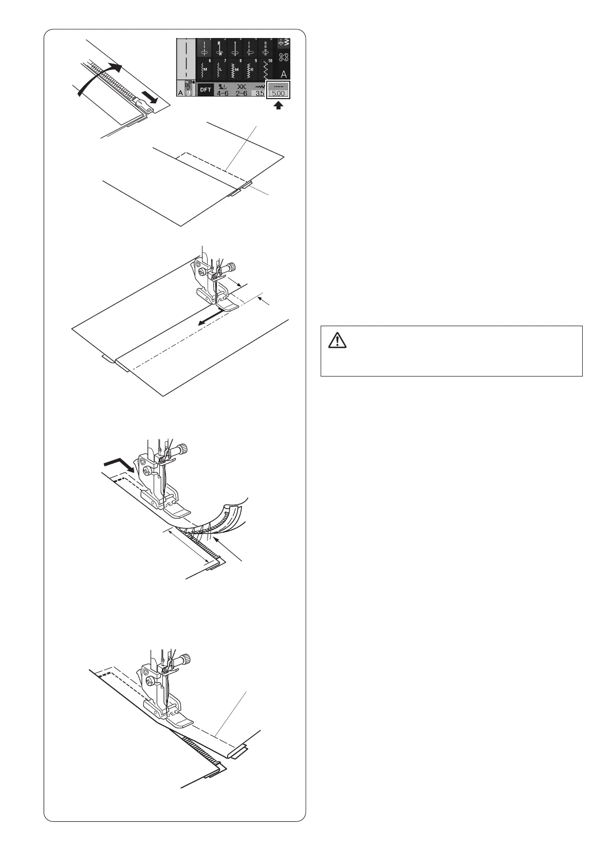 Stop the machine 5 cm (2˝) before the foot reaches