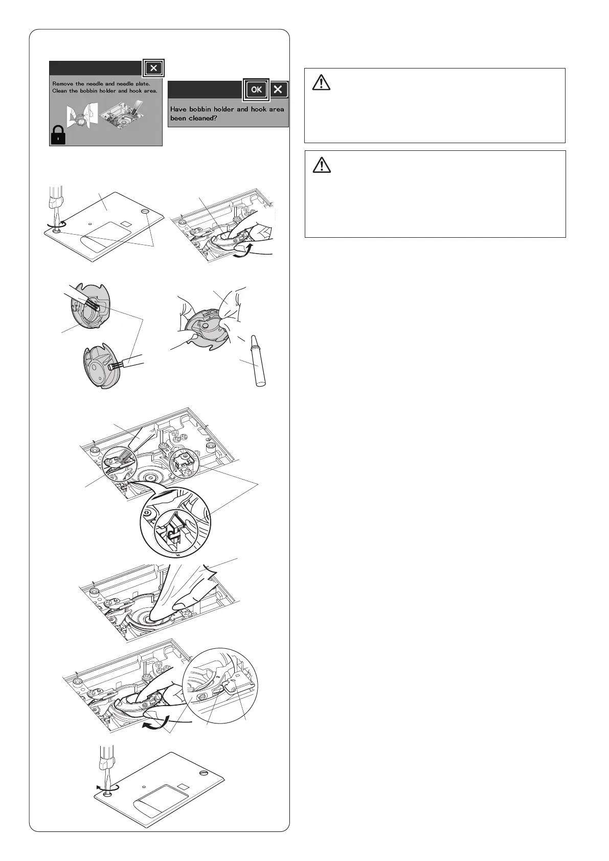 The caution message for cleaning the bobbin case and