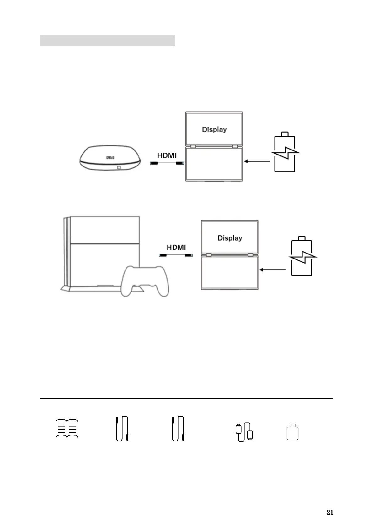 Manual | Type-C cable | Charging | HDMI cable | Power