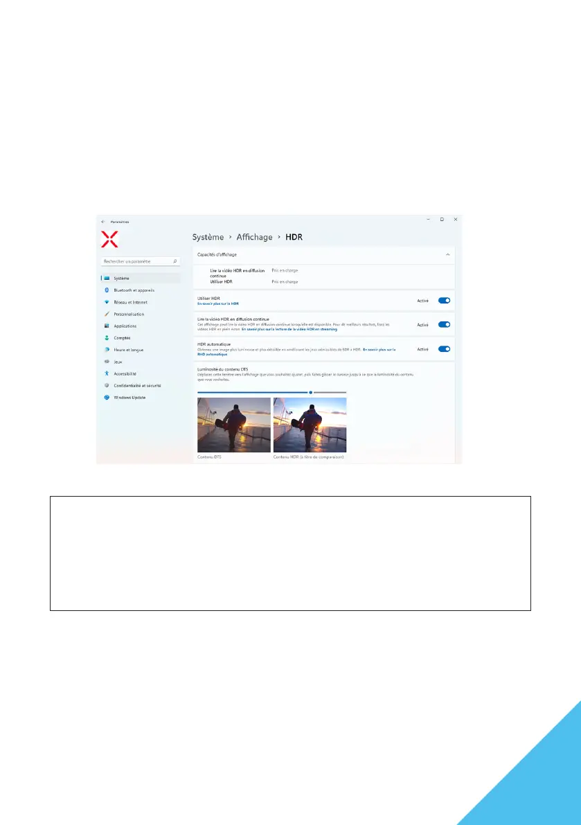 la fonctionnalité HDR. Veuillez vérier les paramètres de Windows 10