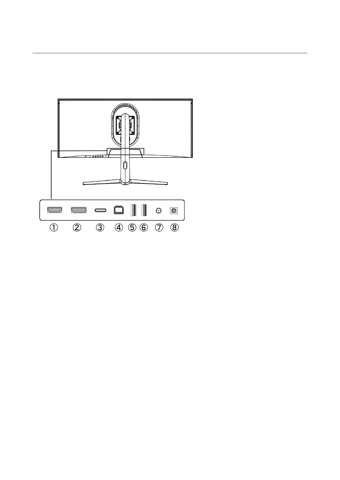 4 : Port USB-B : Lorsqu'il est connecté à HDMI ou DP en se connectant à un PC avec un câble de conversion USB-B