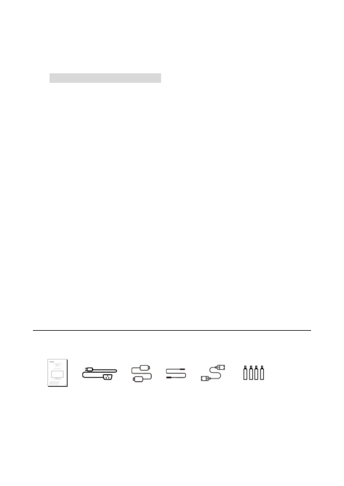 Manuel | Câble d'alimentation | Câble HDMI | Câble Type-C | Câble USB B-A | Entretoise VESA
