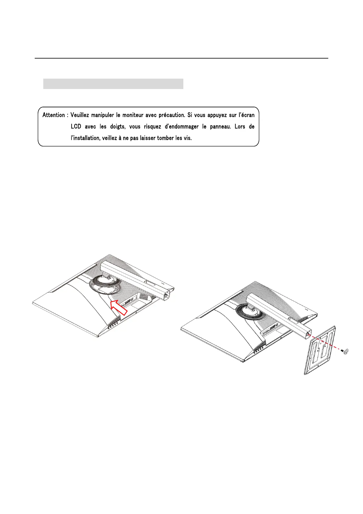 2. Insérez le crochet en haut du support dans la pièce de fixation du support à l'arrière du moniteur.
