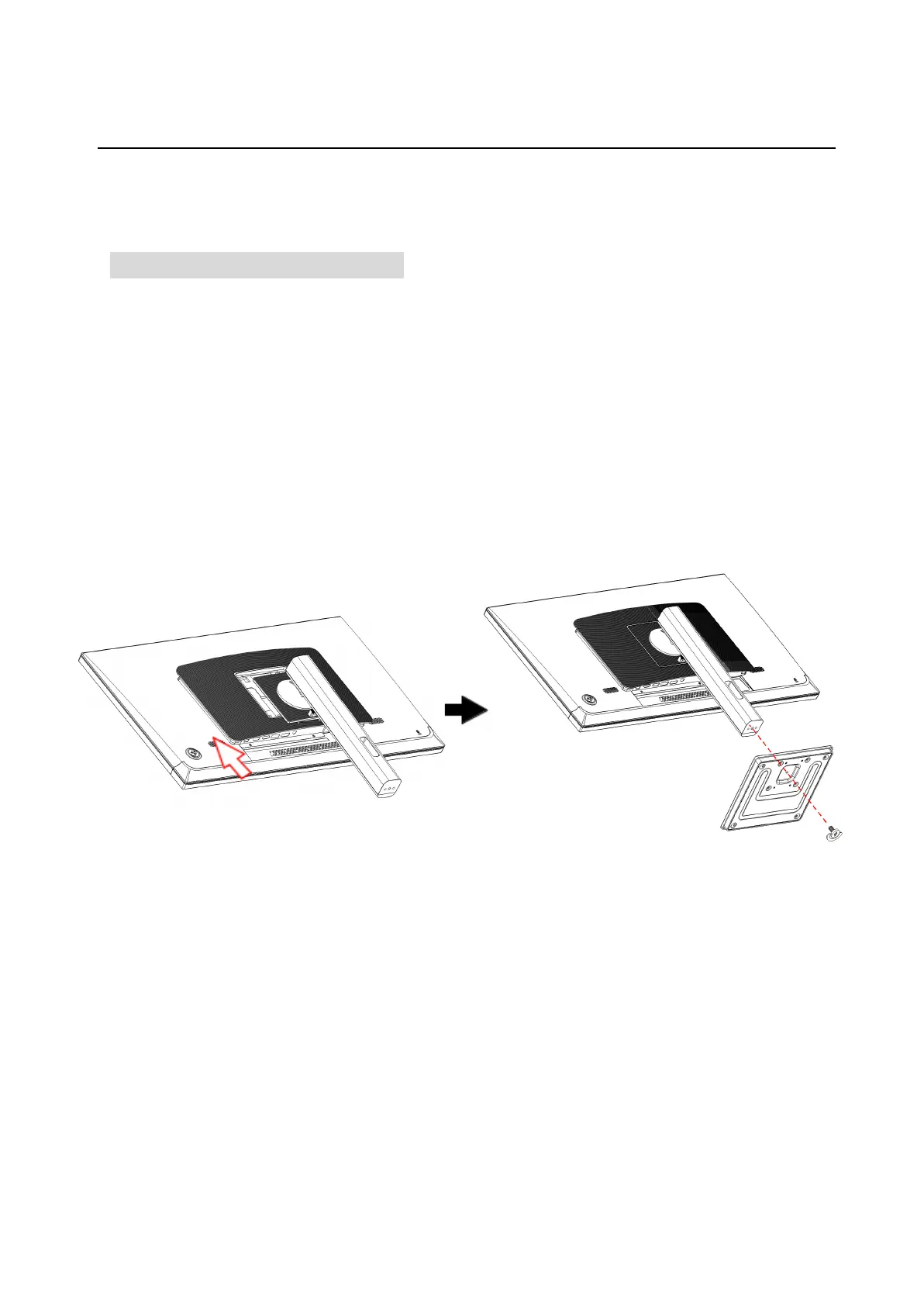 2. Insert the hook at the top of the stand into the mounting piece on the back of the monitor.