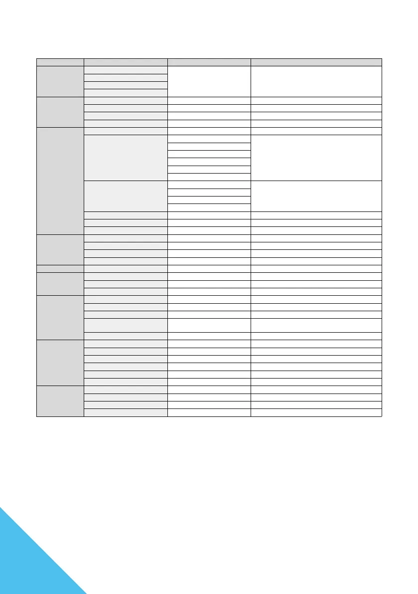 MENU FUNCTION ADJUSTABLE VALUE COMMENT