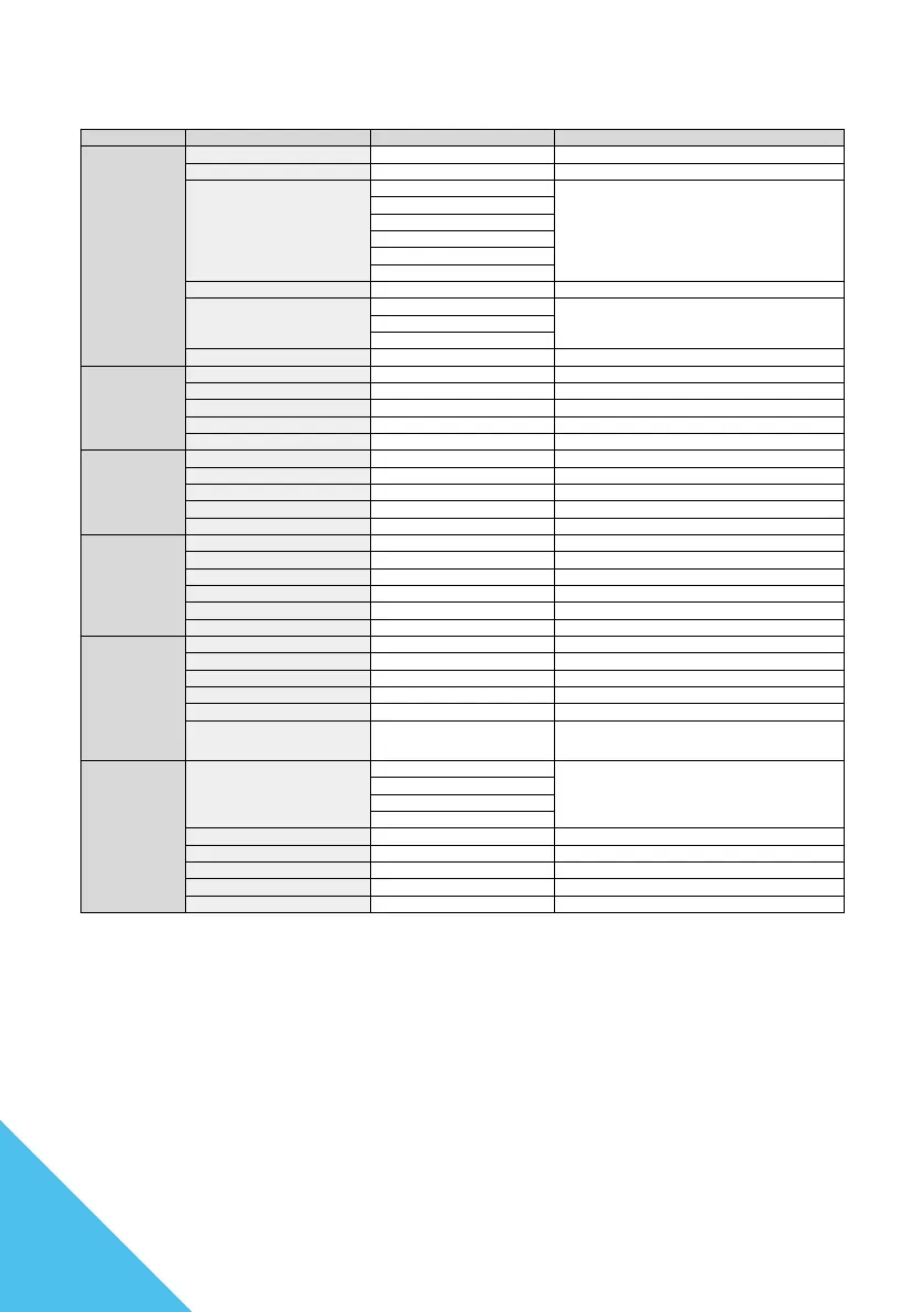 MENU FUNCTION ADJUSTABLE VALUE COMMENT
