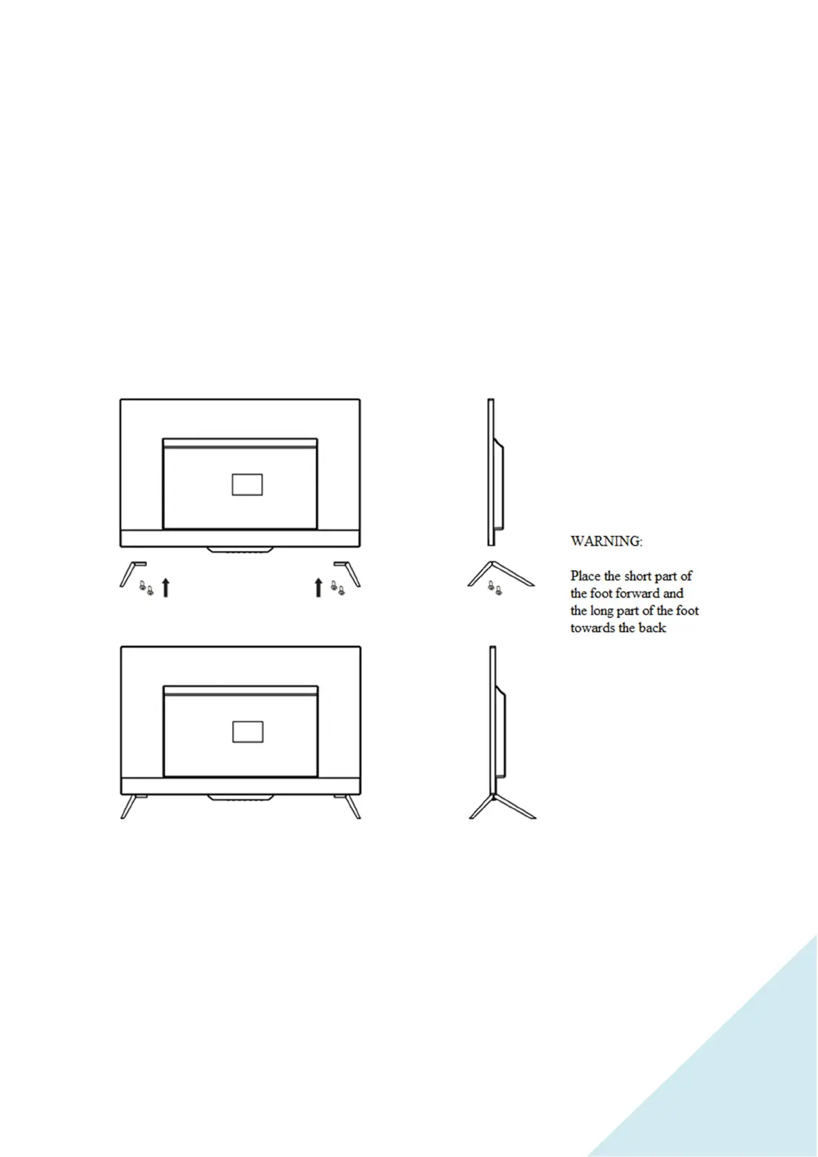 2. Position one foot against the underside of the monitor by placing the longest part backwards and use 2 supplied