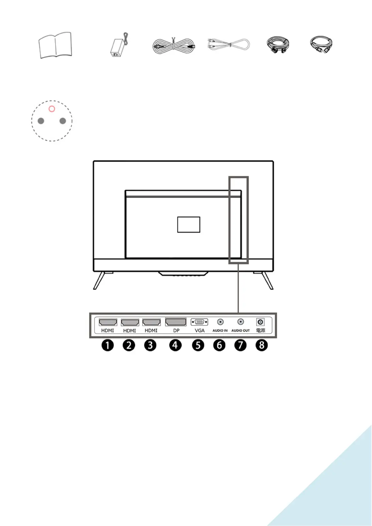 Manual | DC Adaptor | Power cord | DP cable | VGA cable | HDMI cable