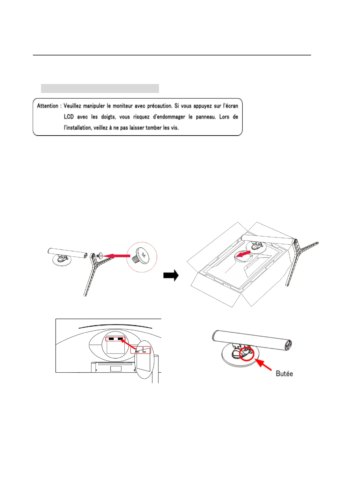 support à l'arrière du moniteur. Assurez-vous que la butée du côté du pilier s'enclenche.