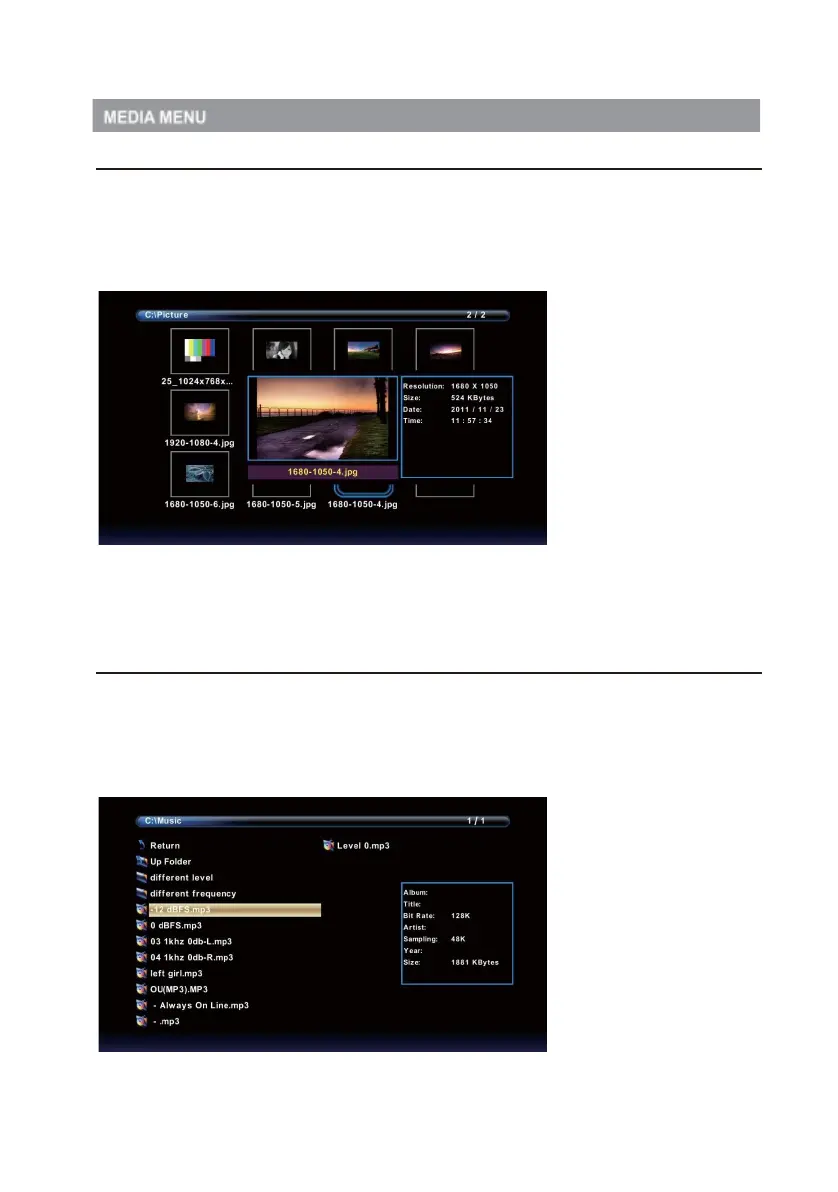 Press ◄ / ► button to select MUSIC in the main menu, then press Enter button to enter. Press